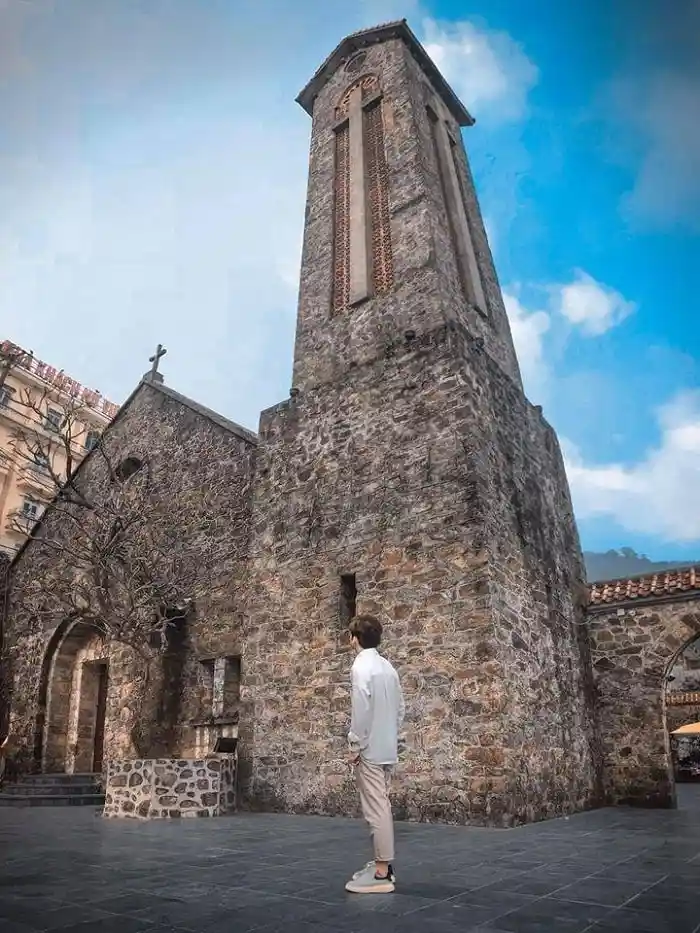 Nhà thờ được khởi dựng từ năm 1906, lúc đầu chỉ là ngôi nhà sàn lợp lá, mãi đến năm 1937 mới được xây dựng lại bằng đá theo mô hình kiến trúc Gothic. Đây là một trong bốn ngôi nhà thờ đá nổi tiếng ở Việt Nam, cùng với nhà thớ đá Phát Diệm (Ninh Bình), nhà thờ đá Sa Pa (Lào Cai) và nhà thờ đá Nha Trang (Khánh Hòa). Trải qua nhiều năm tháng, công trình này vẫn giữ nguyên sức sống và vẻ đẹp ấn tượng của nó. Vì nằm trên vùng núi cao, khí hậu mát mẻ, quanh năm mây mù bao phủ nên các phiến đá đều ngả màu rêu phong, sương khói, khiến cho nhà thờ mang dáng vẻ trầm mặc, cổ kính.