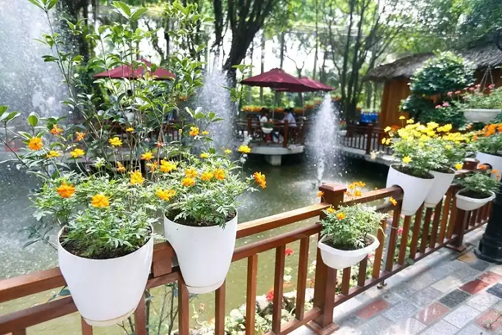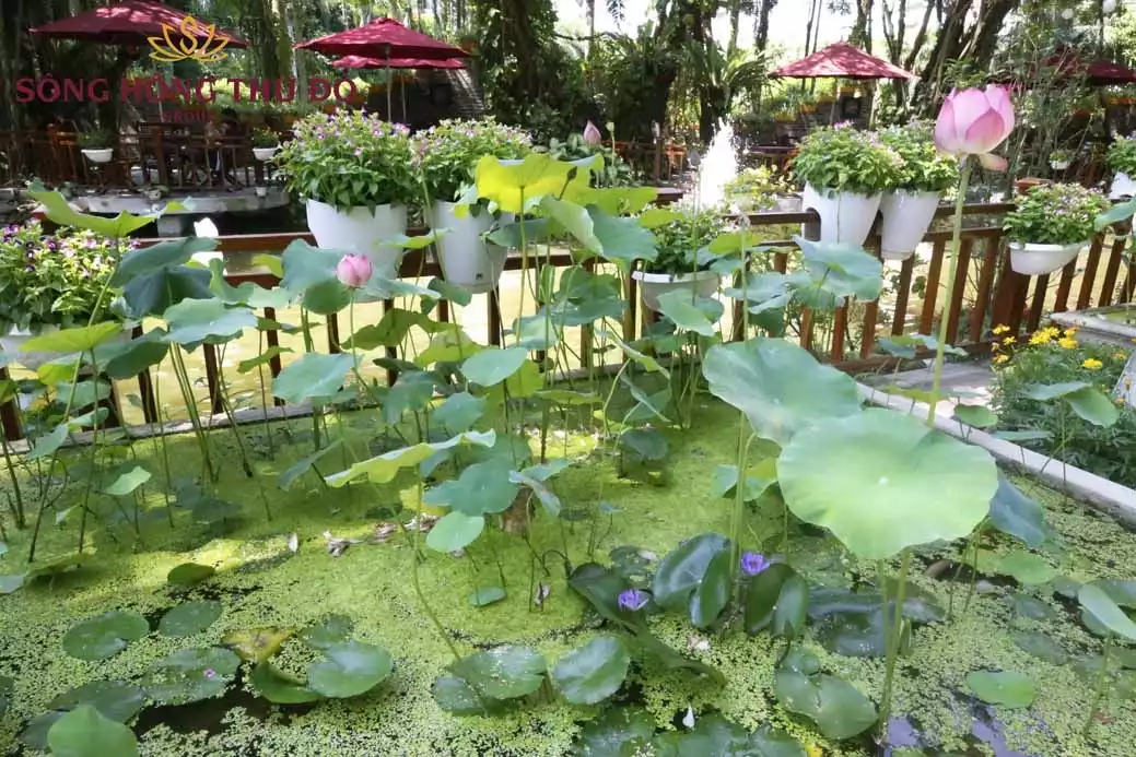 Cà phê sông Hồng Thủ đô với vị trí thuận lợi, nằm trên khu vực phía Bắc Đầm Vạc, đây được coi như lá phổi xanh của thành phố, không gian thoáng mát hiền hòa cùng với phong cảnh thiên nhiên tươi đẹp. Tất cả đã tạo nên một góc cà phê đầy thơ mộng trong khu nghỉ dưỡng sông Hồng.