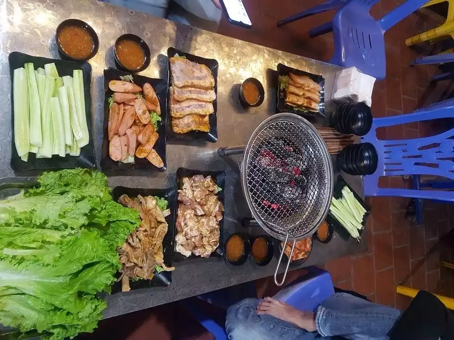 Thực đơn tại quán ăn ngon giá cả phải chăng gồm có đồ nướng, các món gà, món vịt, lẩu, hải sản, các món khai vị cùng các loại đồ uống... Với thực đơn các đồ nướng chỉ từ 20.000VNĐ – 85.000 VNĐ là sẽ có ngay một dĩa đồ nướng thơm ngon, hấp dẫn, với các món ba chỉ lợn nướng, ba chỉ bò cuốn nấm, tràng lợn, sụn lợn nướng, lòng lợn nướng, ba chỉ bò, chân gà hay gà rút xương… hoặc nếu bạn đam mê với các loại hải sản nướng thì mực trứng, mực ống, tôm sù là những món dành cho bạn.
