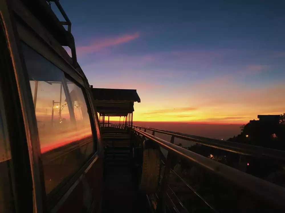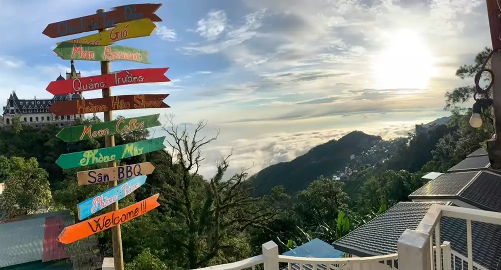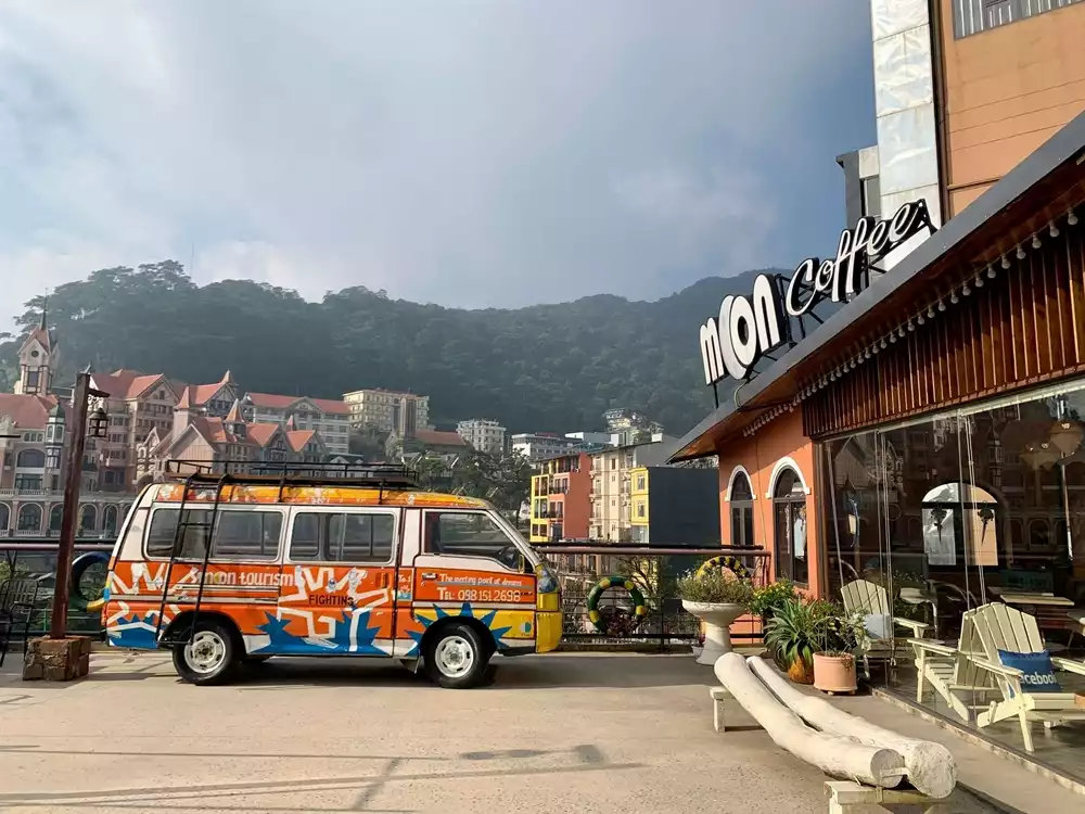 Nằm gần với khu vực đỉnh của Thác Bạc, Moon Coffee tựa như ngồi nhà bình dị, nơi bạn có thể ngồi an yên và ngắm nhìn toàn cảnh của Tam Đảo xanh mướt. Màu xanh chủ đạo tạo sự nhẹ nhàng, đồ uống khá ngon, không gian ngoài trời rộng rãi có nhiều góc để chụp ảnh đẹp. Đặc biệt là khu Tháp kính trong suốt và bắt mắt.